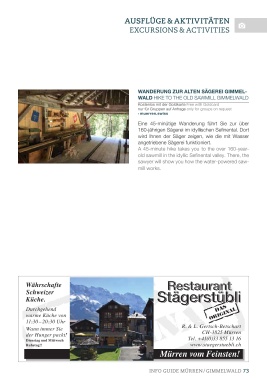 72 INFO GUIDE MÜRREN / GIMMELWALD Stuebli_Inserat_128x48_sommer_2022.indd 1 INFO GUIDE MÜRREN / GIMMELWALD 73